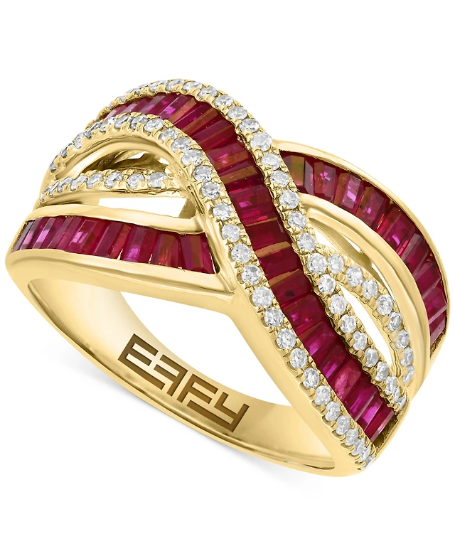 Effy Ruby (1-1/20 ct. t.w.) & Diamond (3/8 ct. t.w.) Open Crossover Statement Ring in 14k Gold