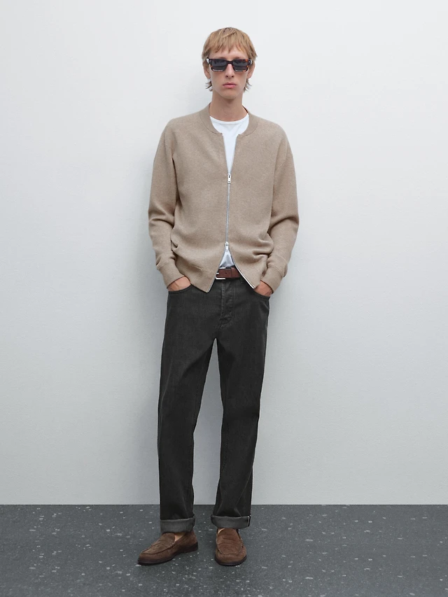 Men’s round-neck sweater panama-colored cotton with logo on the back