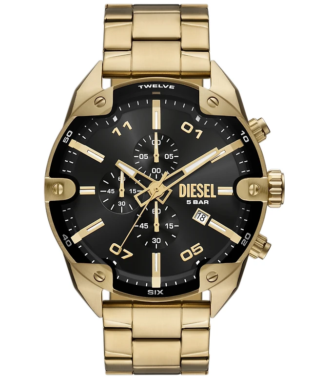 Diesel Men's Chronograph Griffed Gold-Tone Stainless Steel Bracelet Watch 48mm