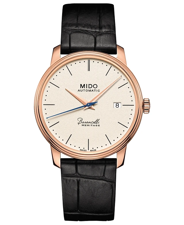 Mido Men's Swiss Automatic Baroncelli Iii Heritage Black Leather Strap Watch 39mm