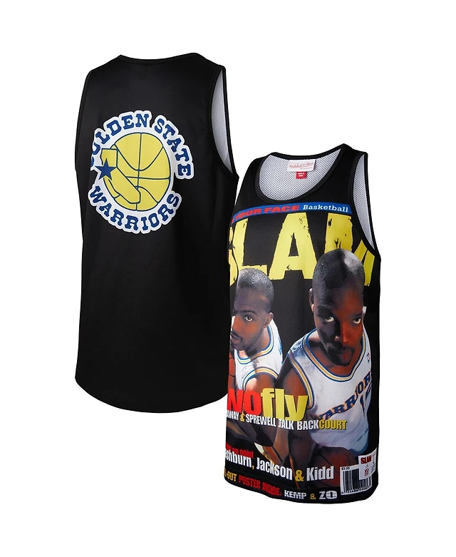 Mitchell & Ness Men's Black Golden State Warriors Monogram Allover Logo Mesh Trucker Adjustable Hat