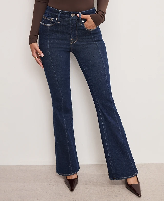 Good American Petite Mid-Rise Flare-Leg Jeans
