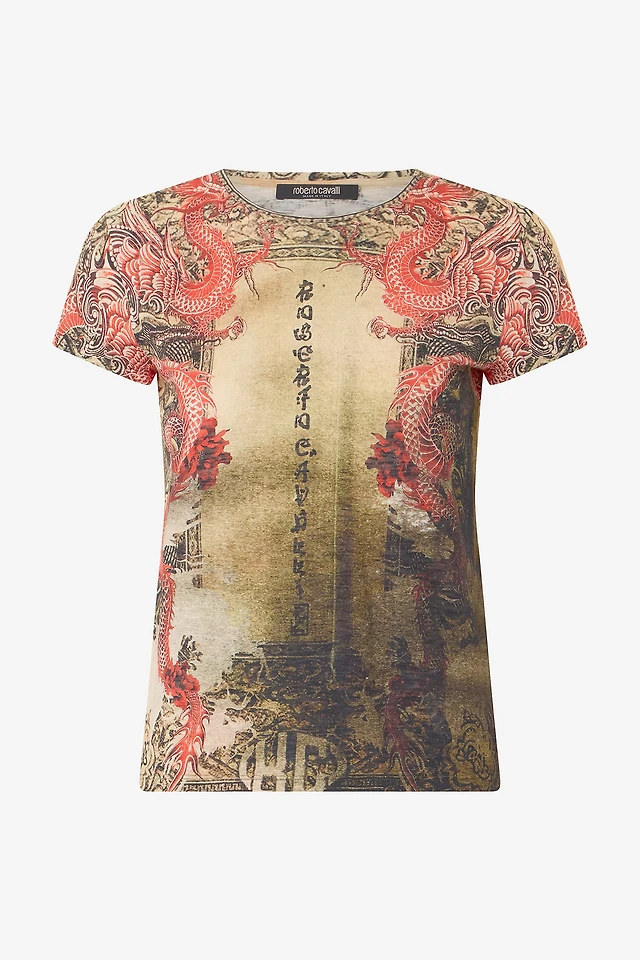 Cotton T-Shirt With Oriental Print
