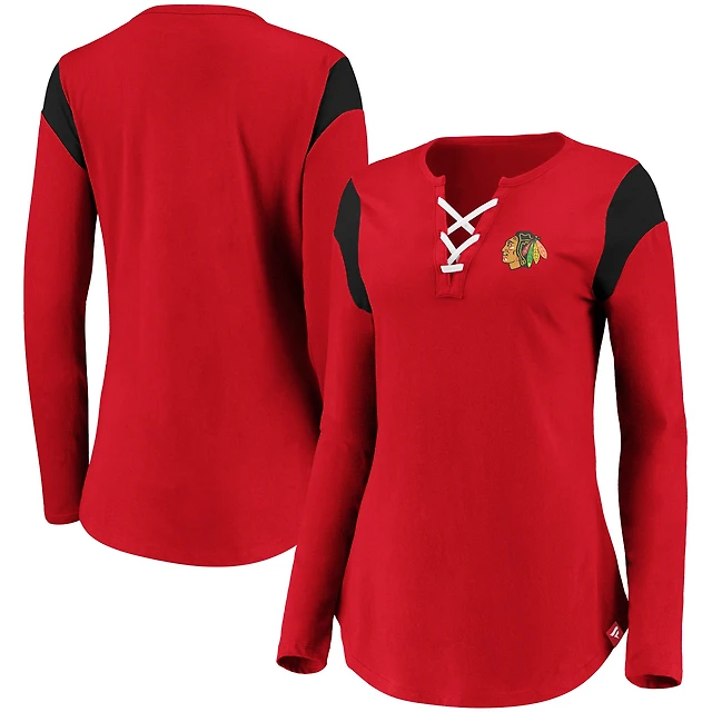 Women's Red Chicago Blackhawks Iconic Long Sleeve Lace-Up V-Neck T-Shirt