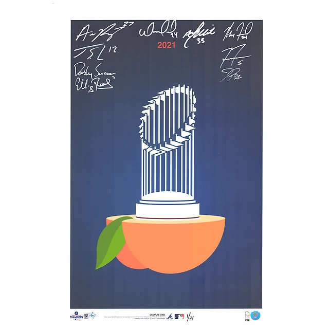 Atlanta Braves Multi-Signed 14" x 20" 2021 World Series Champions Peach Logo Minimalist Print by S. Preston