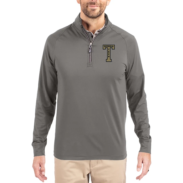 Men's Cutter & Buck Gray Georgia Tech Yellow Jackets Primary Logo Adapt Eco Knit Stretch Raglan Quarter-Zip Pullover