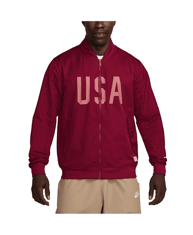 Nike Men's Red Usmnt Woven Bomber Full-Zip Jacket