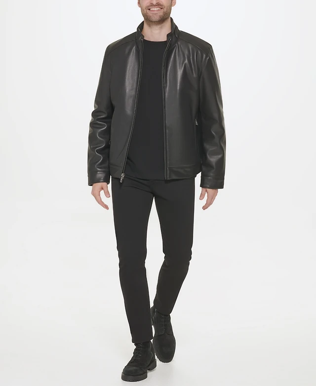 Karl Lagerfeld Paris Men's Collared Leather Jacket