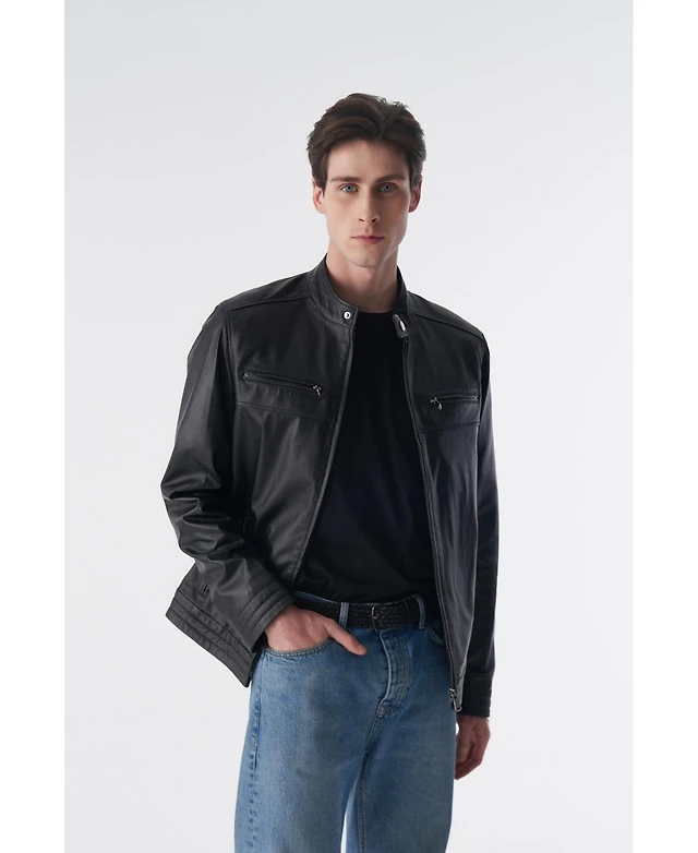 Furniq Uk Men's Fashion Leather Jacket, Nappa Black
