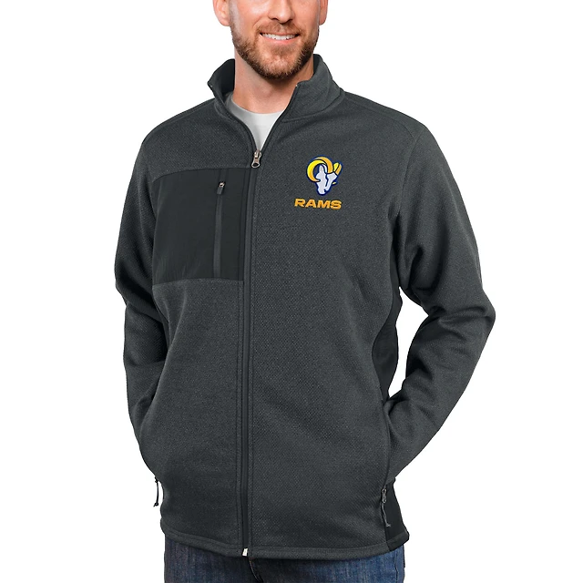 Men's Antigua Heather Gray Los Angeles Rams Victory Full-Zip Jacket