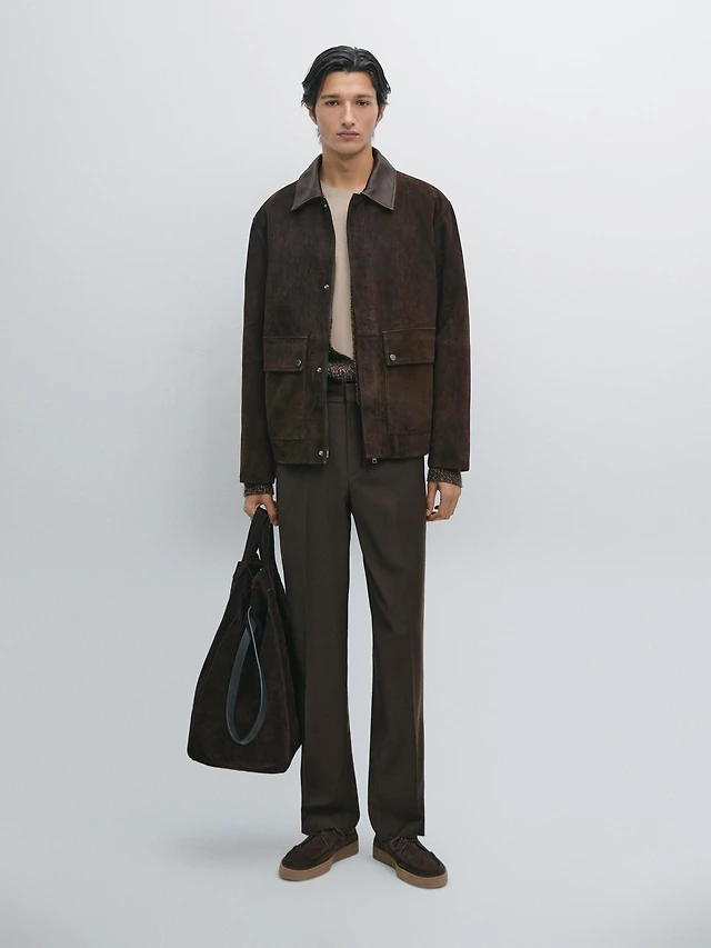Suede leather jacket with collar detail