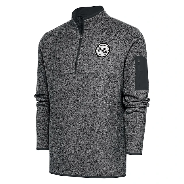 Men's Antigua Heather Charcoal Detroit Pistons Fortune Big & Tall Quarter-Zip Pullover Jacket