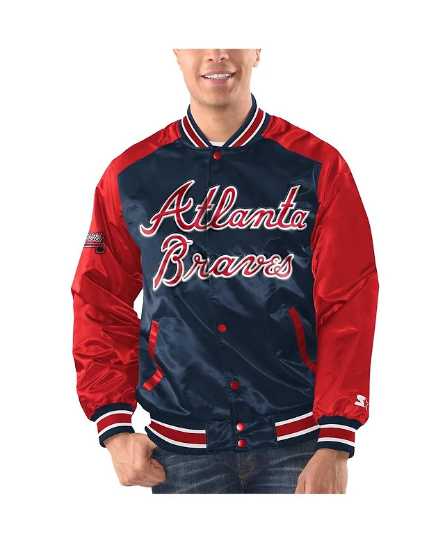 Men's Starter Navy, Red Atlanta Braves Varsity Satin Full-Snap Jacket