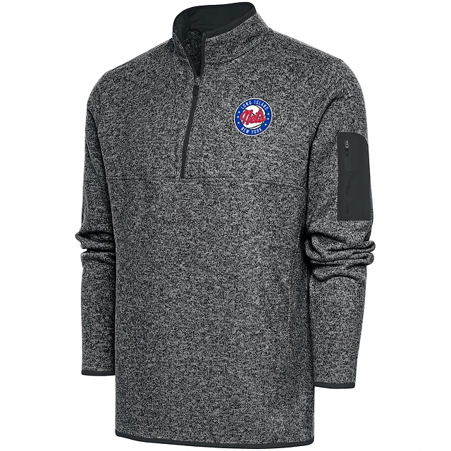 Men's Antigua Heather Charcoal Long Island Nets Big & Tall Fortune Quarter-Zip Pullover Jacket
