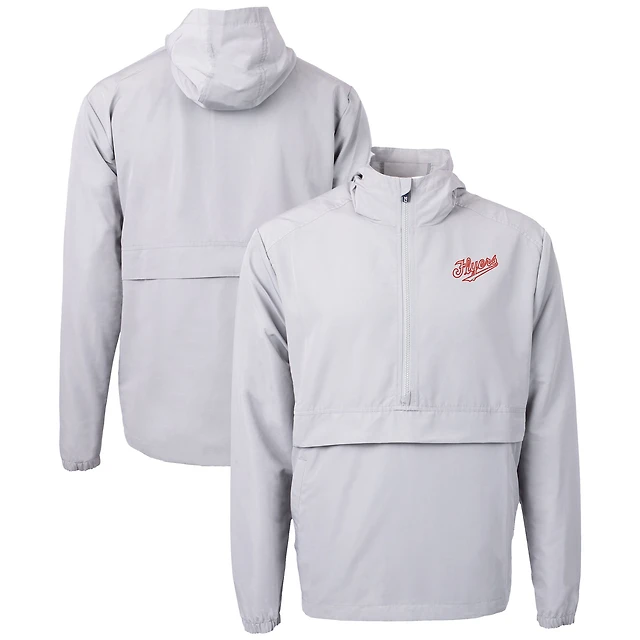 Men's Cutter & Buck Gray Dayton Flyers Vault Charter Eco Recycled Half-Zip Anorak Jacket