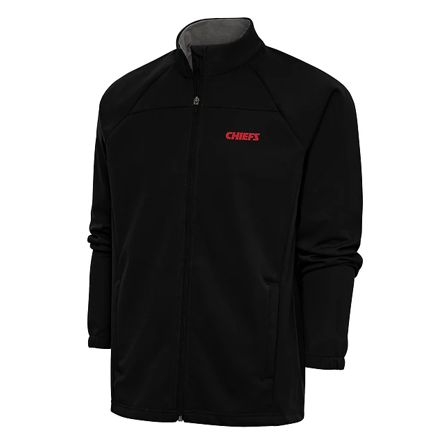 Men's Antigua Black Kansas City Chiefs Team Logo Throwback Links Full-Zip Golf Jacket