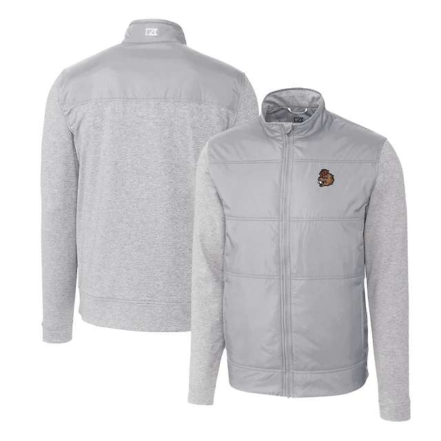 Men's Cutter & Buck Gray Oregon State Beavers Vault Stealth Hybrid Quilted Full-Zip Windbreaker Jacket
