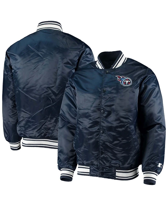 Men's Navy Tennessee Titans Locker Room Satin Varsity Full-Snap Jacket