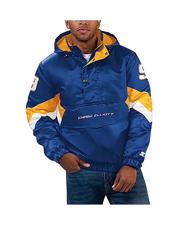 Men's Starter Royal Chase Elliott Home Team Satin Half-Zip Hoodie Jacket