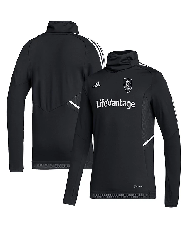 Men's Antigua Heather Black Atlanta United FC Brushed Metallic Logo Fortune Quarter-Zip Pullover Jacket