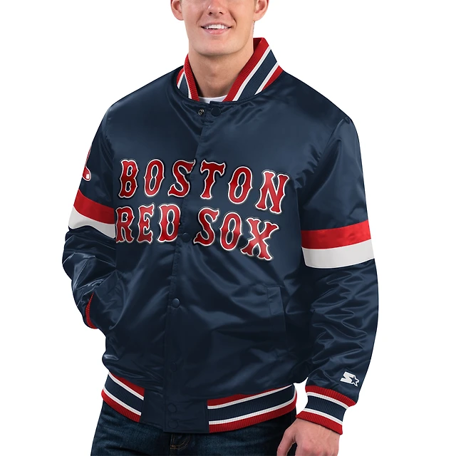 Men's Starter Navy Boston Red Sox Home Game Satin Full-Snap Varsity Jacket