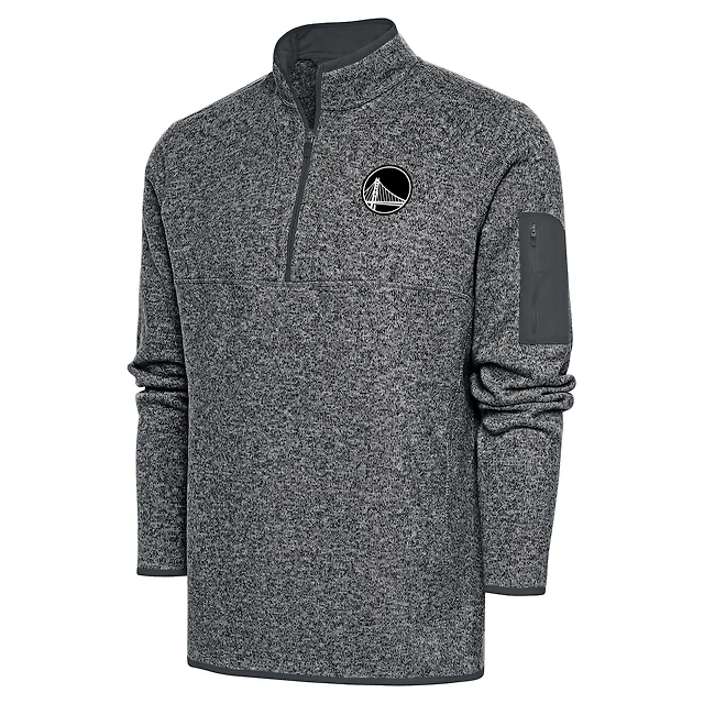 Men's Antigua Heather Gray Golden State Warriors Metallic Logo Fortune Quarter-Zip Jacket