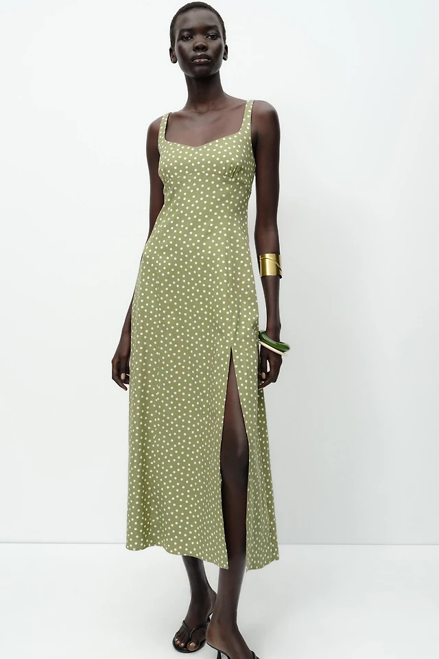Pinkblush Maternity Light Olive Leaf Print Pleated Midi Dress