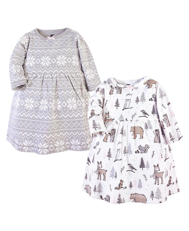 Lara Women's Long Sleeve V-Neck, Layered Skirt Print Dress