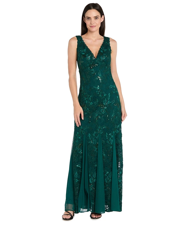 Morgan & Company Juniors' V-Neck Embellished Sleeveless Gown