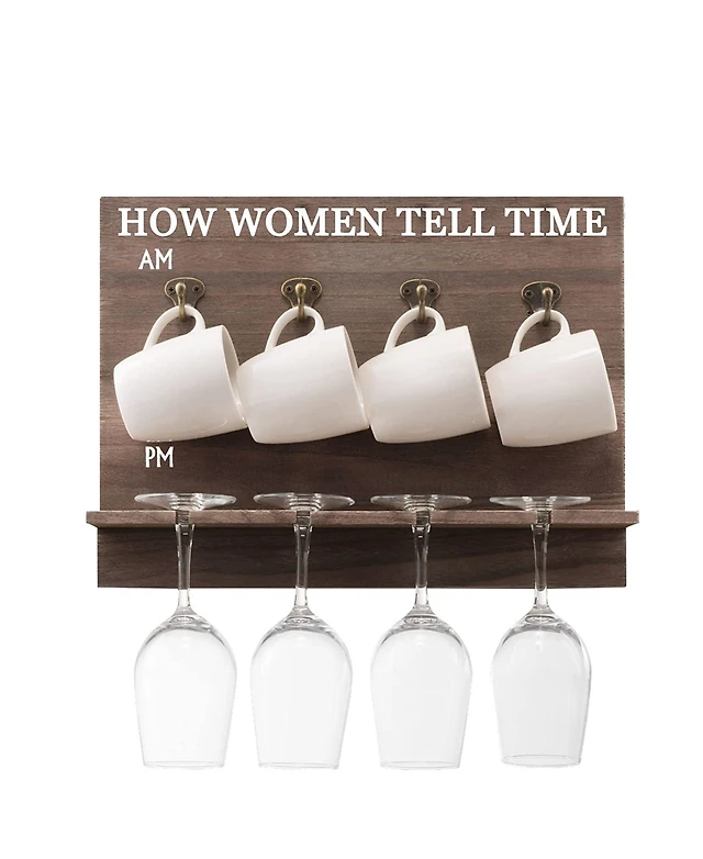 How My Wife Tells Time Wall Mounted Wine Rack with Glasses and Coffee Mugs