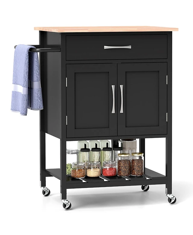 Rolling Kitchen Island Cart with Drop-Leaf and Wine Rack