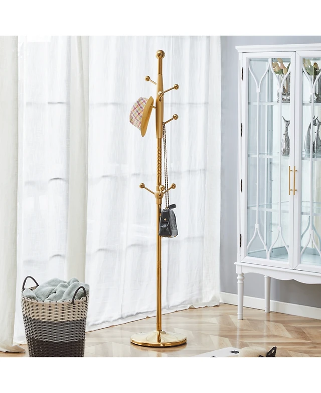 Freestanding Metal Coat Rack – Entryway Storage Stand with Hooks & Built-In Umbrella Holder, Heavy Duty Design