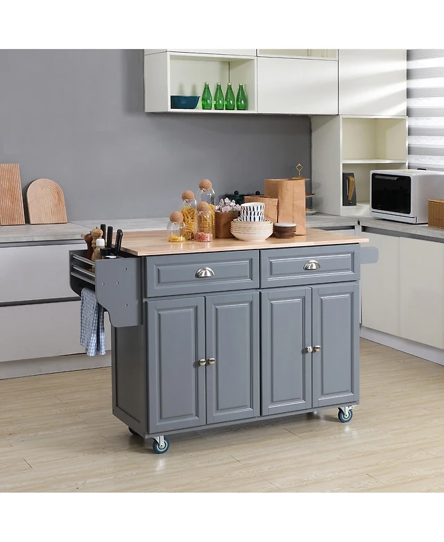 Kitchen Island Cart with Rolling Storage Cabinet Table Drawer and Drop Leaf