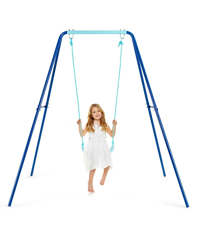 Gymax Outdoor Kids Swing Set Heavy Duty Metal A-Frame w/ Ground Stakes