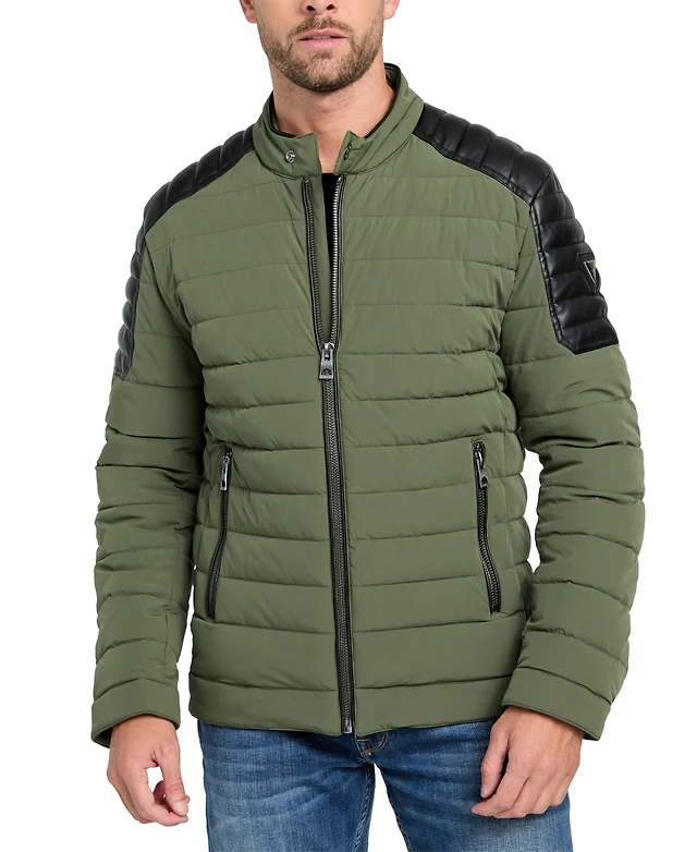 Guess Men's Lightweight Quilted Jacket with Moto Detail