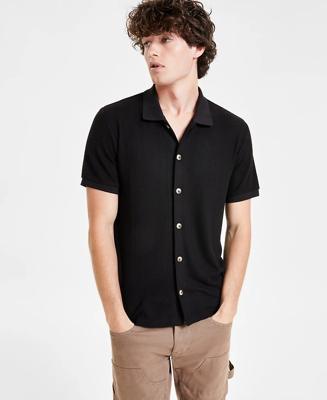Guess Men's Larson Knitted Short Sleeve Button-Front Camp Shirt