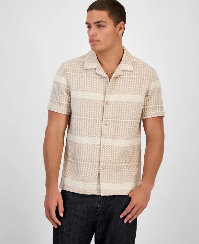 Guess Men's Arrow Jacquard Short Sleeve Button-Up Shirt