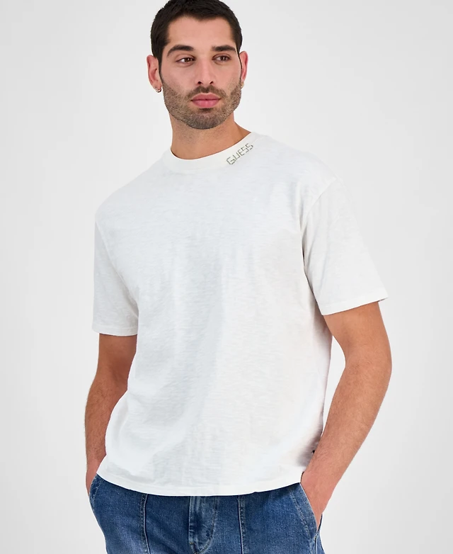 Guess Men's Short Sleeve Embroidered Logo Crewneck T-Shirt