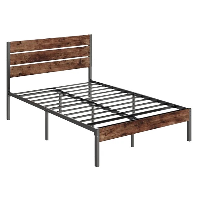 Queen Industrial Bed Frame with Rustic Headboard and Footboard-Queen Size