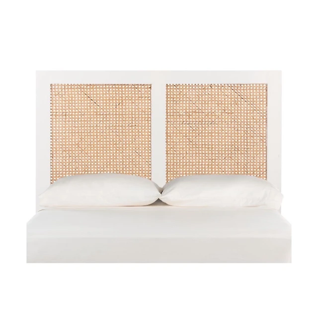 LuxenHome Natural Finish Rubberwood with Rattan Panels Headboard, King