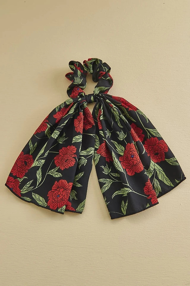 Buy Boho Red Flower Scrunchie Scarf - Hippie Hair Accessories