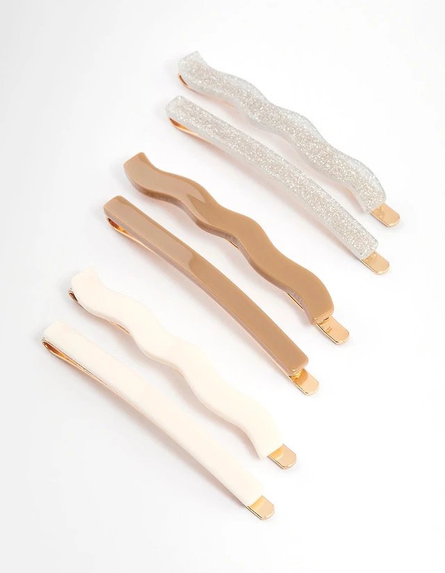 Liquid Lux Hair Barrettes in Gold Tone, Set of 2
