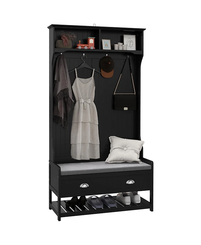 Streamdale Farmhouse 4-in-1 Hall Tree - Mudroom Coat Rack Bench with Drawers, Black