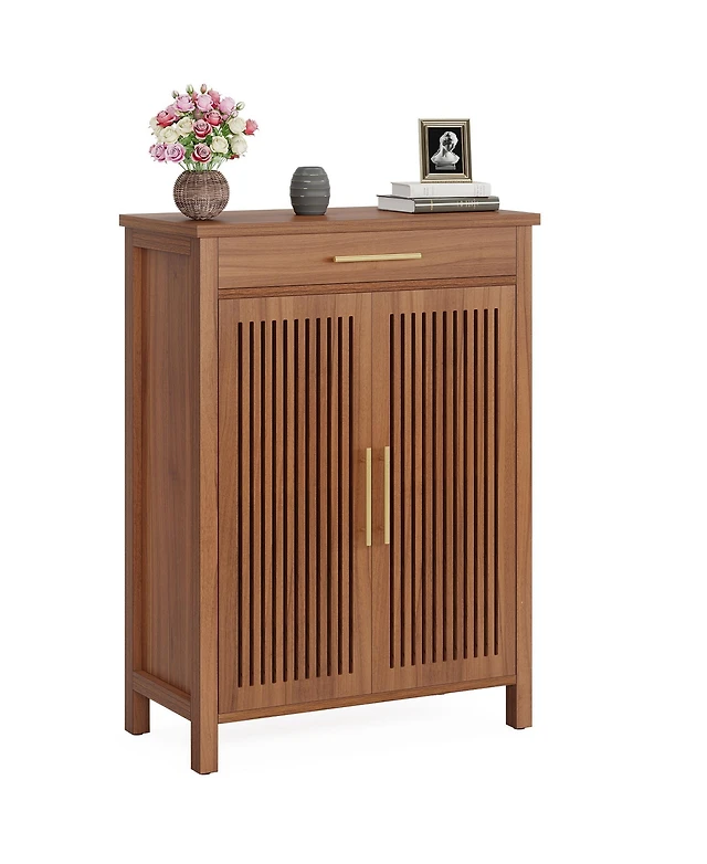 42" Tall Modern Shoe Storage Cabinet with Doors and Drawers, 3 Adjustable Shelves, 4-Tier Shoes Rack Organizer Cabinet for Entryway, Natural