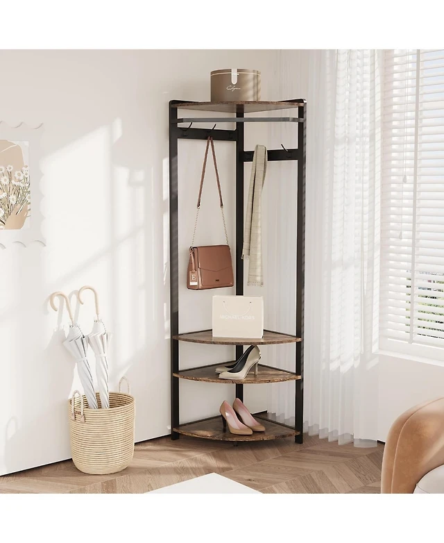 Aheaplus Freestanding Corner Closet Organizer with Hanging Rods, Space-saving System for Walk-in