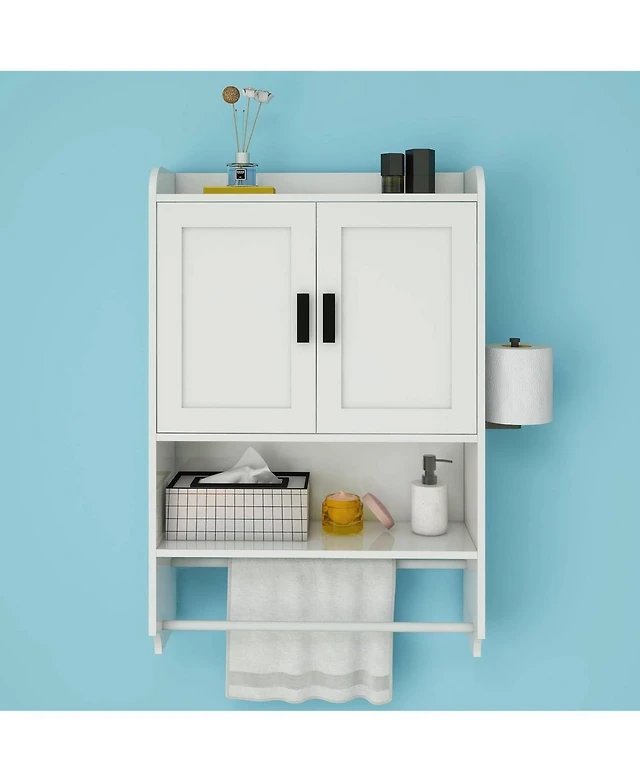 Slickblue Bathroom Wall Cabinet with Storage Shelf and Towel Bar for Organization