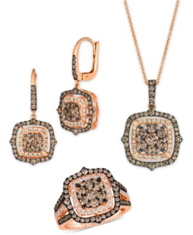 Le Vian Chocolate Diamond Nude Diamond Halo Cluster Pendant Necklace Drop Earrings Ring Collection In 14k Rose Gold