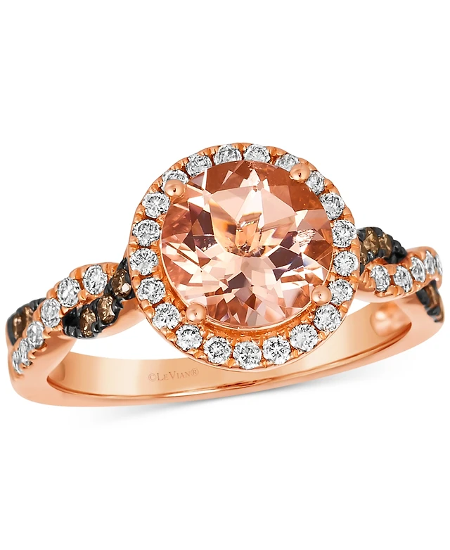 Le Vian Peach Morganite (1 ct. t.w.), Passion Fruit Tourmaline (1/3 ct. t.w.), & Nude Diamond (3/8 ct. t.w.) Halo Ring in 14k Rose Gold