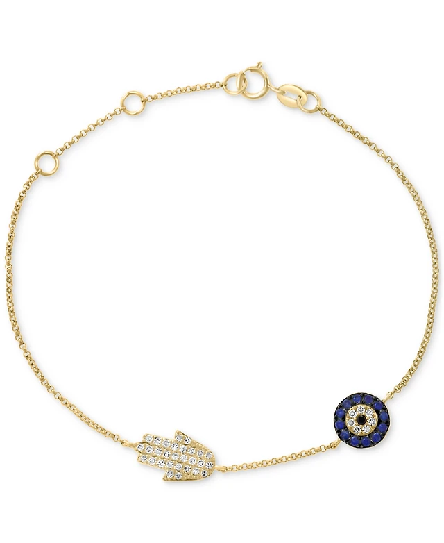 Effy Sapphire (1/8 ct. t.w.) & Black and White Diamond (1/5 ct. t.w.) Hamsa Hand & Evil Eye Link Bracelet in 14k Gold