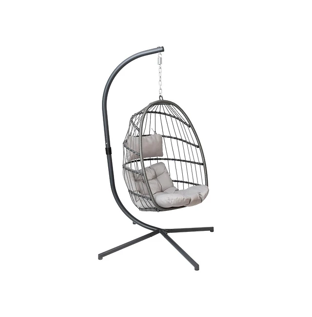 Merrick Lane Riley Foldable Woven Hanging Egg Chair With Removable Cushion And Stand For Indoor And Outdoor Use